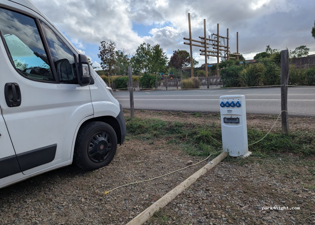 Un peu cher pour n’avoir aucun service, et très bruyant dès 6h30 du matin avec le nettoyage du parc à côté. L’eau ne fonctionnait même pas pour faire la vidange. Pas de toilettes non plus.