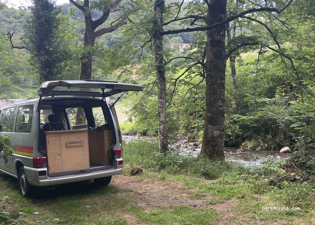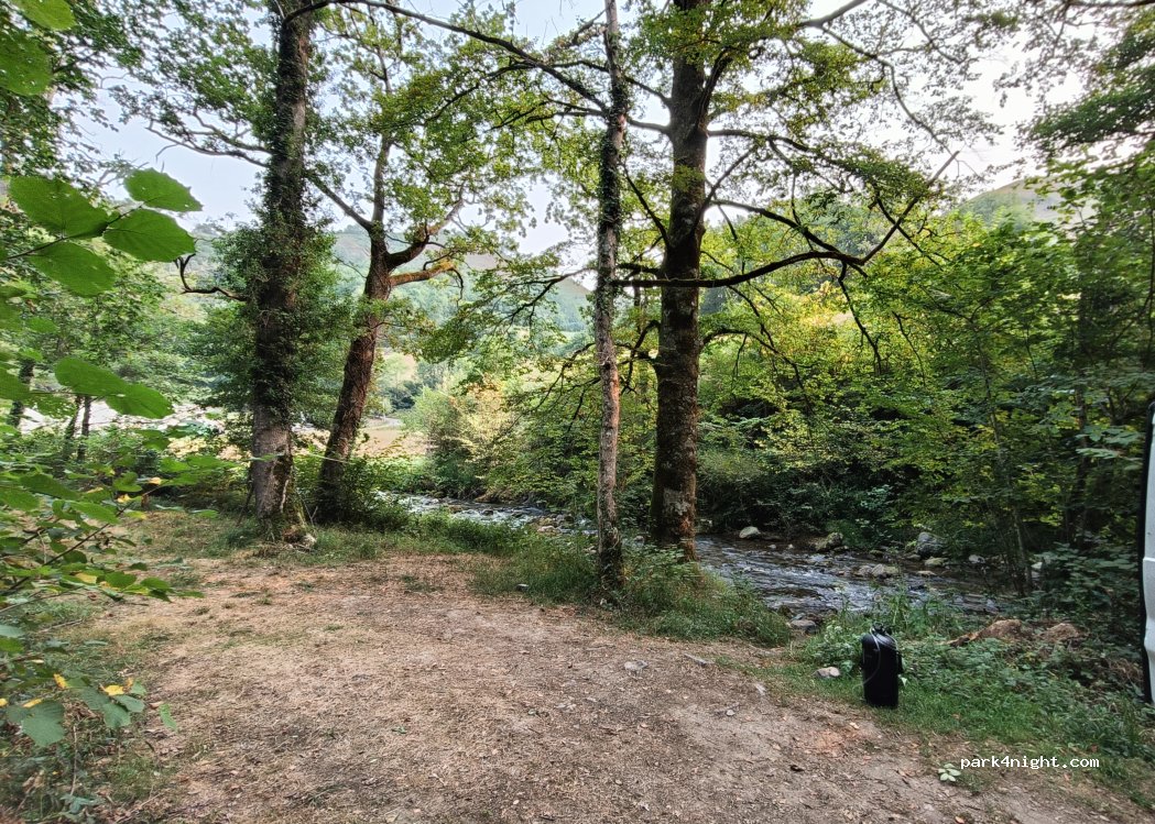 Super spot pour chill, et dormir bercé par le bruit de l'eau. Baignade possible, poubelles à 50m, et 10 min du parking du départ de la passerelle Holzarte. Eau potable à Larrau. Ok pour 2 petits véhicules.