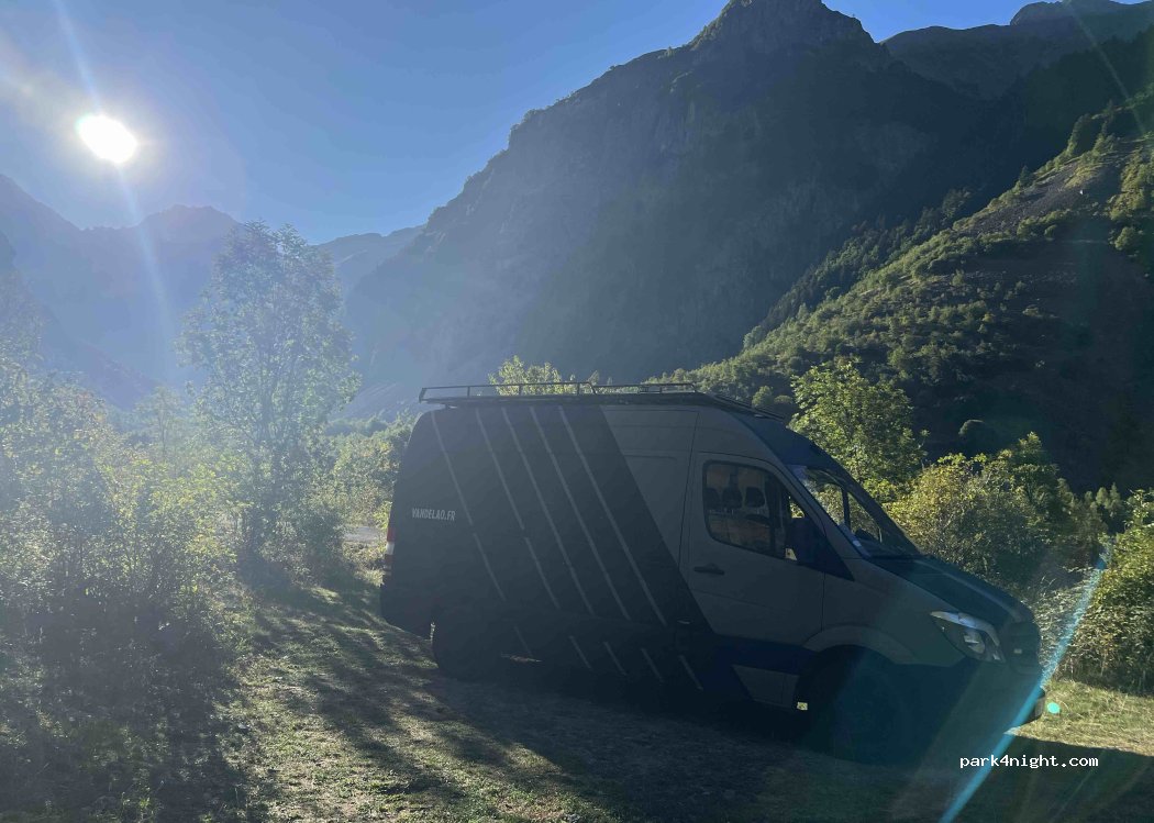 Vue extraordinaire mais des dizaines de mouches collées au van pendant des heures. Nuit calme malgré la proximité de la route. Le bruit de la cascade n'est pas gênant.