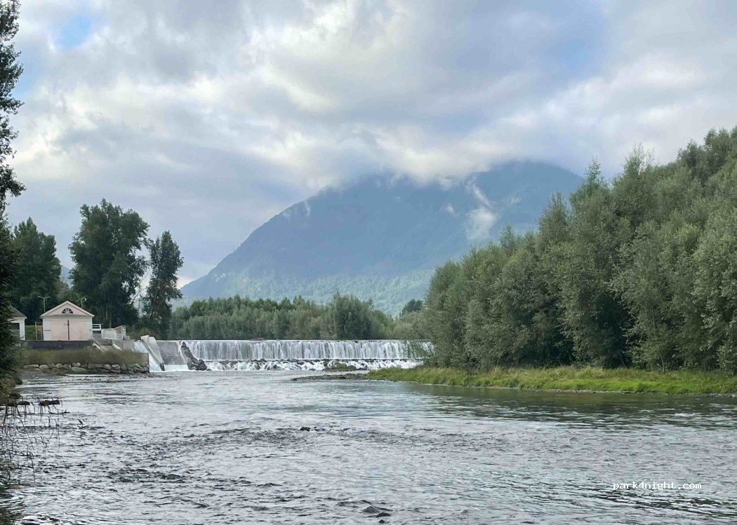 Parking sin más. Cerca de la carretera y del río, dónde los pescadores van a pescar truchas. Sin servicios. Hay mesas de picnic y barbacoas. Bien para un alto en el camino.