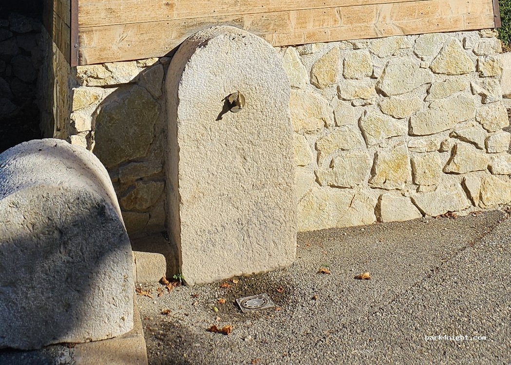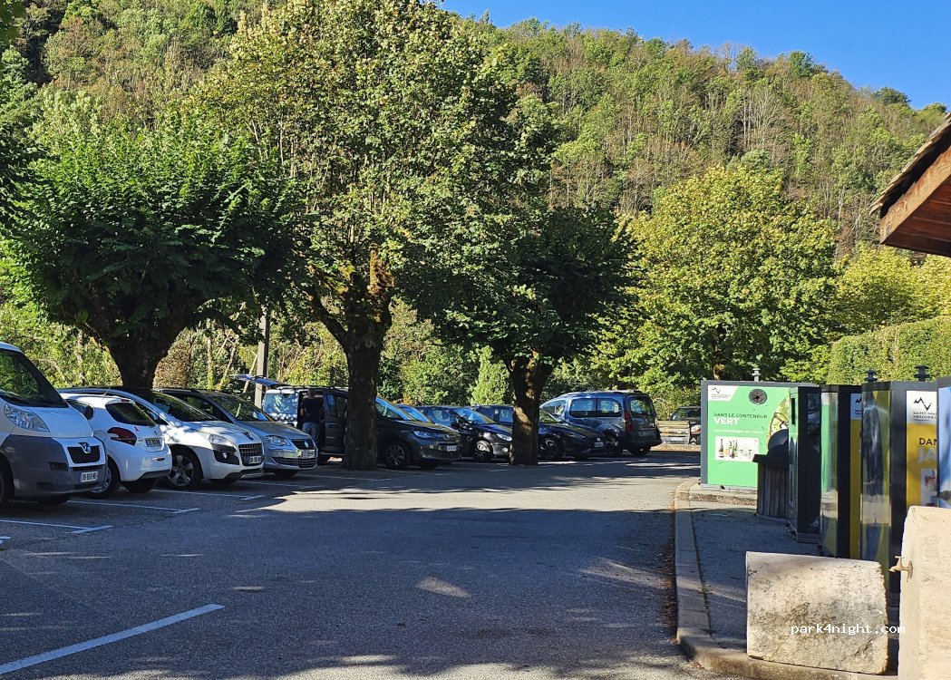 parking sans contrainte de hauteur en fa e des poubelles. point eau départ randonnées
