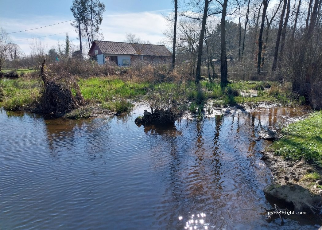 Huge parking in front of the campsite, on the other side of the pond. Very nice for a short stop. Quiet and quiet nights.