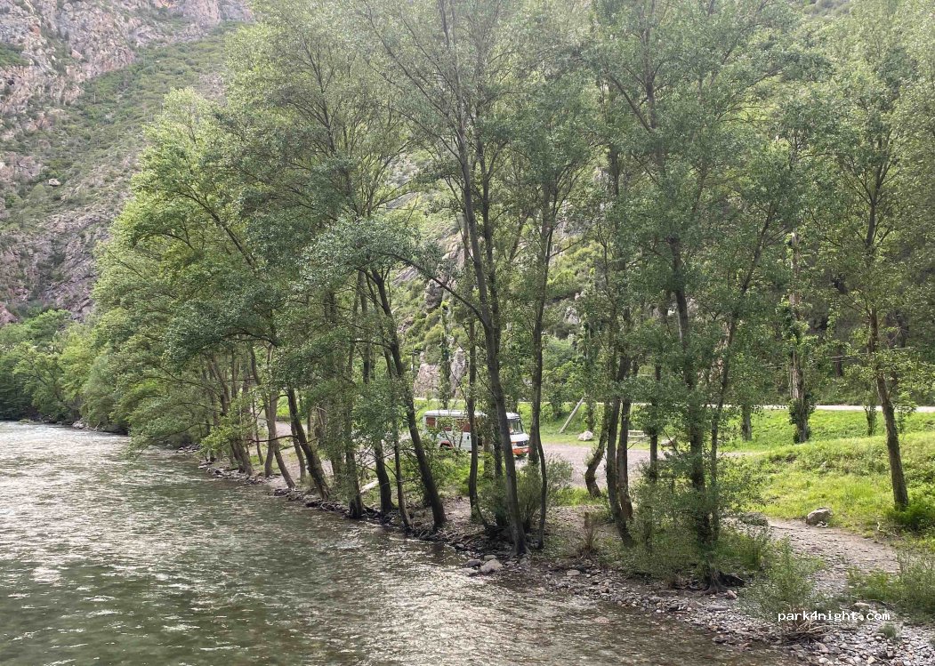 Super endroit pour passer la nuit au frais ! Au bord de la rivière sur un parking plat. Un petit peu de monde mais très calme. Très facile d’accès.