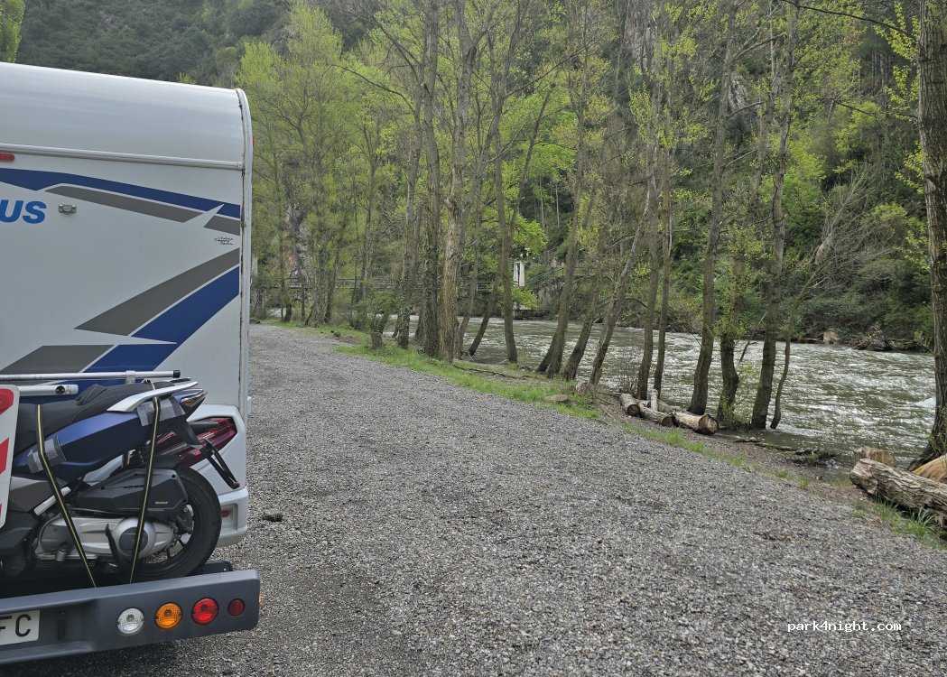 Isolé, propre, équipé de poubelles et de bancs, ombragé. Belle rando de 4 km vers Gerri de la Sal ( 2 km allé et 2 pour le retour). Magnifique spot.