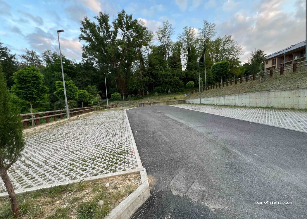 Parcheggio del campo sportivo. Parcheggio affollato prima della partenza dei mezzi degli atleti per gli allenamenti, poi intorno alle 21 il parcheggio è stato completamente sgombrato, lasciando un'ampia zona pianeggiante. Abbiamo trascorso lì una notte tranquilla. Nuovo parcheggio molto tranquillo!