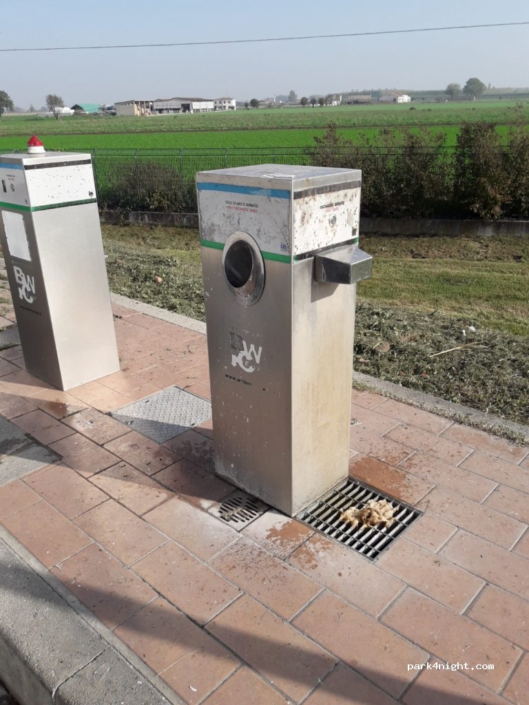 Area di servizio, con possibilità di svuotare acque grigie e servizi igienici. C'è anche un servizio igienico ed è possibile ricaricare l'acqua
