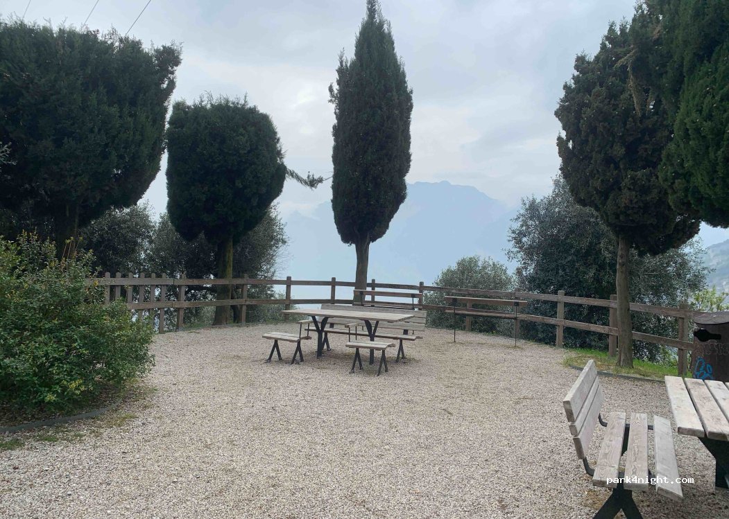 Viewpoint to Garda’s lake. Outstanding views. Slept one night without any trouble. It’s next to the road so you can hear the cars passing by, but it is not a busy road during the night, it did not disturb us. And the sunset and breakfast views are worth it :)