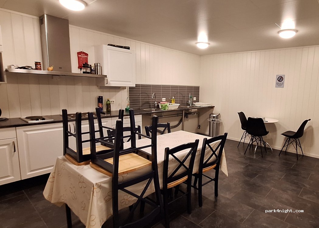 Man kann hier direkt am Meer seinen Camper parken. Eine Küche mit Koch Herd und Mikrowelle Ofen alles geheizt und tipptopp sauber. Sogar eine Sauna mit Holzofen wird auf Wunsch in Betrieb gesetzt. Sehr freundliches personal. Super Aussicht auf die Berge und den Fjord. ich habe hier für mein Dachzelt 240 Kronen bezahlt für eine Nacht. Das Internet ist extrem schnell