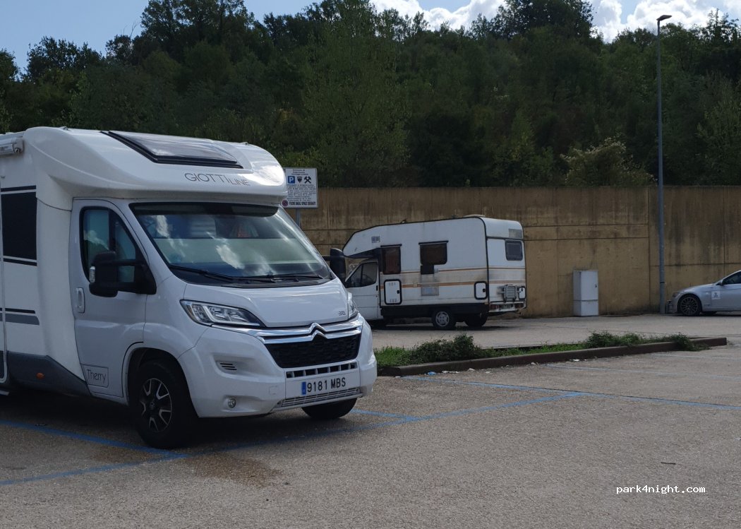 Safe and inexpensive parking lot. We stayed two nights. Quiet except for a group of workmen who meet at 05:30, but only limited disturbance for a very short period.
