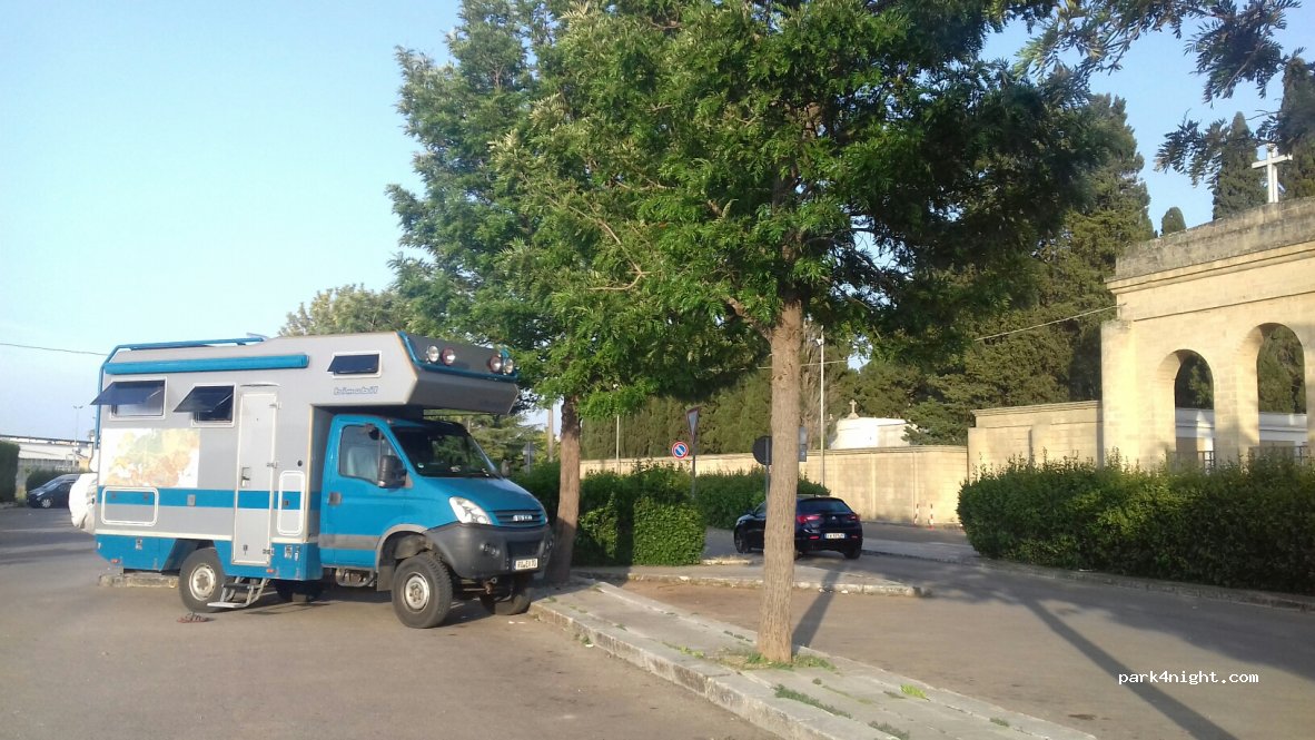 Ampio parcheggio gratuito di fronte al cimitero e 10 minuti dal centro storico ... molto carina. Posto tranquillo nel giorno dobbiamo essere in grado di trascorrere la notte senza problemi.