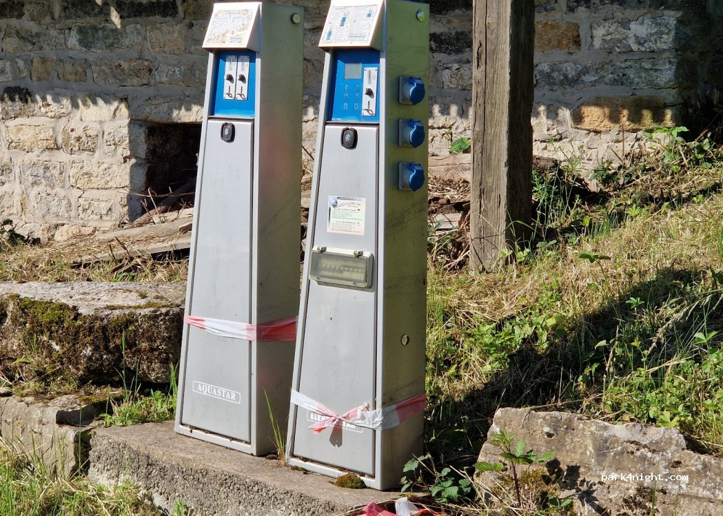 Platz noch zugänglich aber nicht mehr gepflegt von der Gemeinde. Wasser und Strom nicht mehr nutzbar. Haben am 25.05.24 hier übernachtet da nur 2,5 KM von der A81 entfernt.