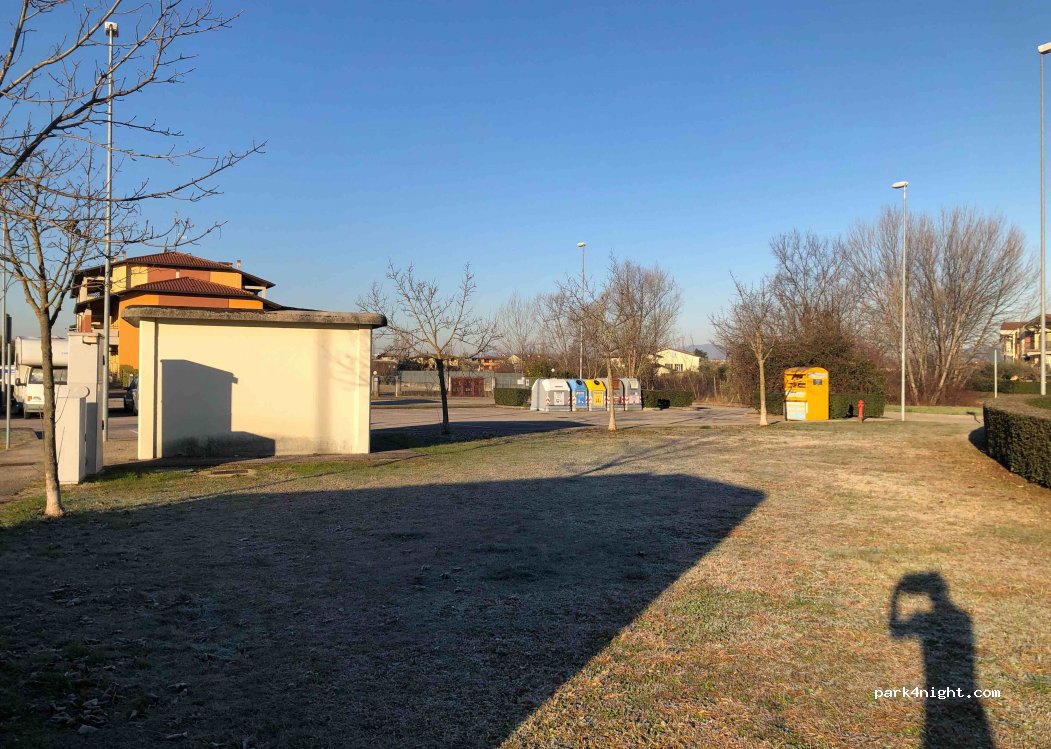 Plat et facile d’accès pour cc7,5m et remorque y avons passé trois nuits au calme exposé plein sud très agréable en janvier avec un grand soleil. Poubelles. Le supermarché Migross à 15 min à pied tout proche une laverie automatique et une pizzeria à emporter. Nuits très calmes. Nous ne l’avons pas laissé seul la journée nos expériences en Italie ont été mauvaises même si ici ça a l’air ok.
