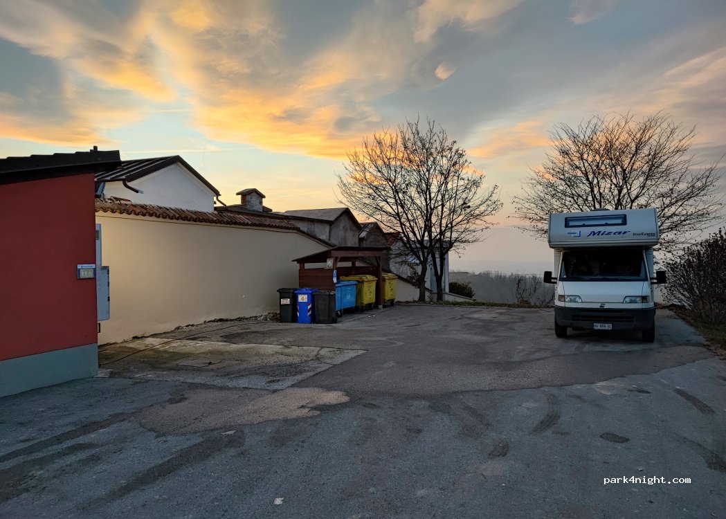 Petit parking goudronné où les camping car et vans sont les bienvenus, merci à la municipalité. Superbe soirée et nuit en van grâce aux tables de pique-nique, au banc géant où il est bon d'admirer le panorama. WC avec lavabo très propre et ouvert en permanence. Possibilité de recharger en eau. Agrès de sport et aire de jeux pour les enfants. Projecteur allumé toute la nuit ce qui peut déranger.