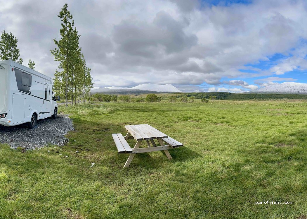 Campeggio in una zona bellissima con alberi d'alto fusto, una sola zona con sterrato al sicuro da infossamenti. Pagamento compilato, per fortuna è arrivato un ragazzo con il terminale per pagare con carta di credito. Alla fine due senior senza corrente abbiamo pagato 4800 ISK, esattamente il doppio degli ultimi campeggi.
