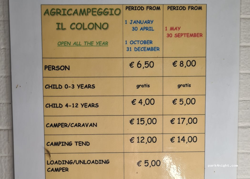 I had a wonderful experience staying at Colono. The location was simply breathtaking - nestled in the heart of nature with stunning views of the surrounding olive trees. The manager was friendly and welcoming. The toilet and shower amenities were top-notch, providing all the comfort and convenience I needed during my stay. I highly recommend this spot to anyone looking for a peaceful and rejuvenating getaway in Toscana. Thank you, Park4Night, for helping me discover this hidden gem!"