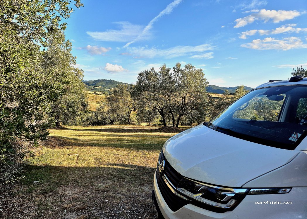 I recommend this place, it’s nice to sleep around olive trees. The owner Maurizio is kind and welcoming. 20€/night is a fair fee for 2 people and a van.