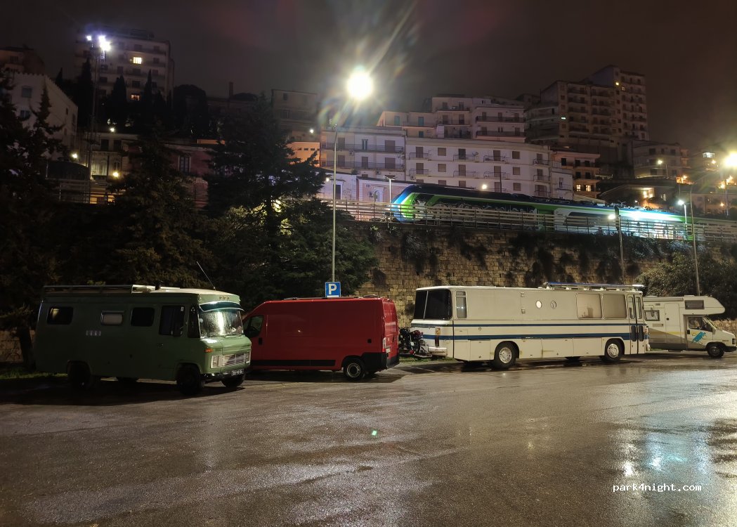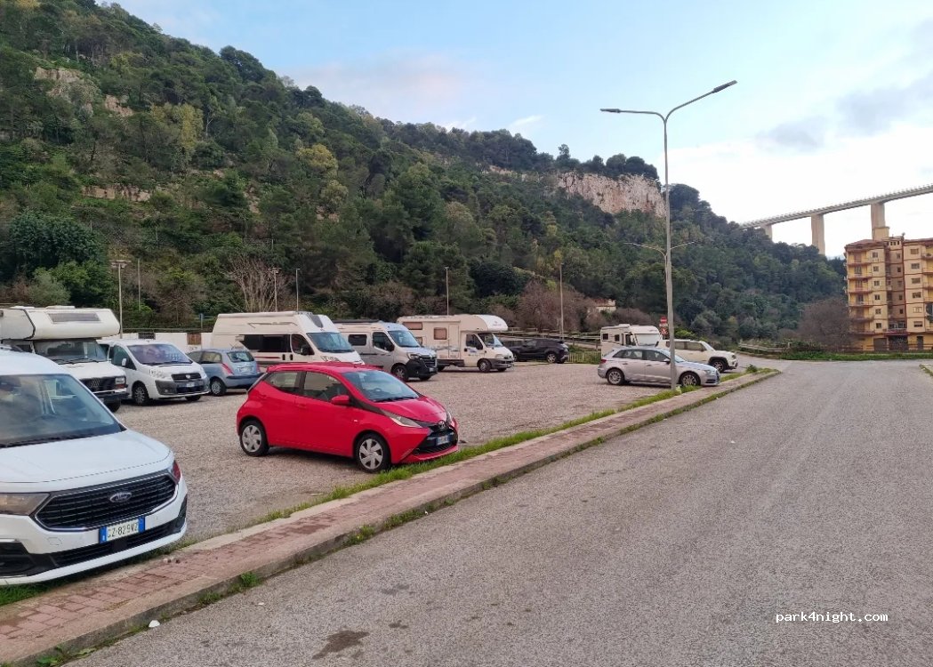 beaucoup de voitures en journée, mais c'est un bon emplacement pour visiter cette autre belle ville Sicilienne. en soirée, quelques places libres tout au bout du parking même pour un 7,5m. nuit un peu bruyante à cause de la route mais supportable. attention, au marché de fin de semaine.