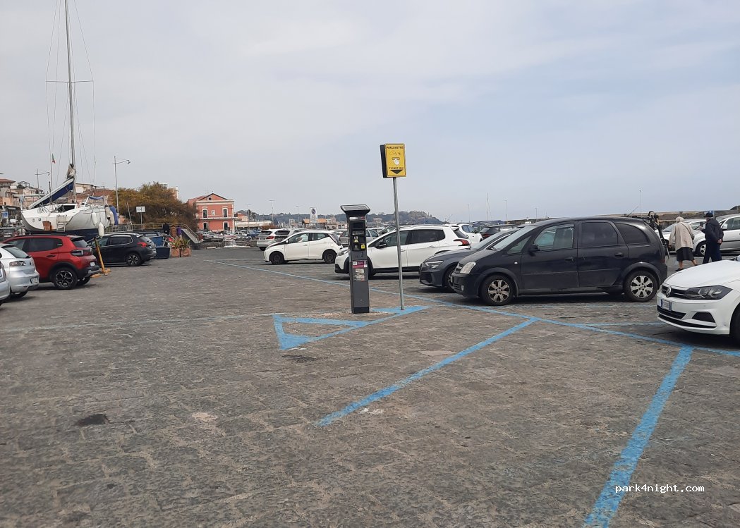 Good parking at the port. Quiet after 11 p.m. I spent 2 nights here. From 8 p.m. to 8:30 a.m. free. Nearby attractions are Acicastello Castello Normanno and Acitrezza Faraglioni.