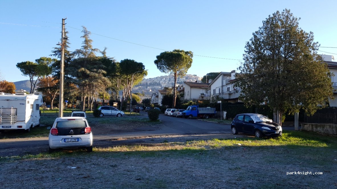 Passato una notte tranquilla, comodo per visitare villa Adriana. Supermercati a pochi passi, è un semplice parcheggio usato dai residenti, la zona è tranquilla non ci sono servizi per camper.