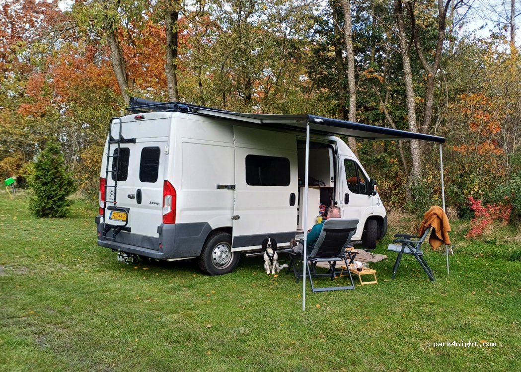 Mooie plek om te staan. Vriendelijke ontvangst. Ondanks dat het seizoen nog niet officieel gestart was waren wij meer dan welkom. Betalen gaat heel makkelijk via een tikkie. Vanaf het terrein loop je zowel aan de voor als aan de achterzijde zo het bos in.
