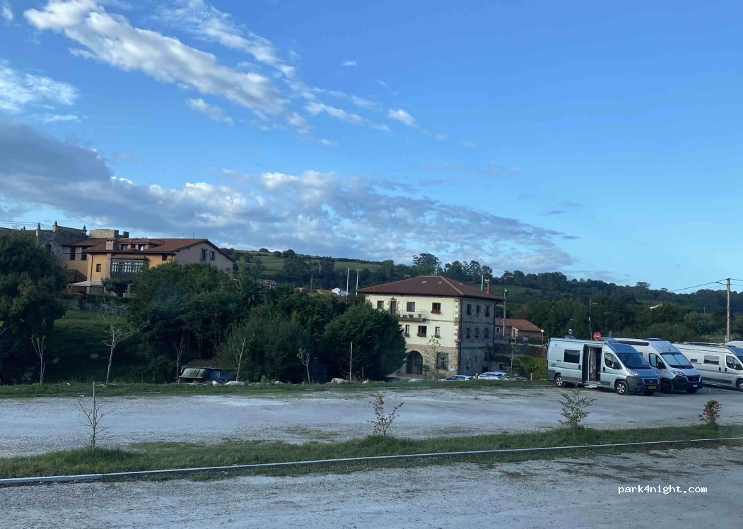 Best option to see Santillana del Mar. Owner very friendly, many campers come late at 8-11pm, and leave before 10am. Owner seems to be charging from 10am, many vans left just before 10am. City is just 5 minutes by foot. Very quiet night!