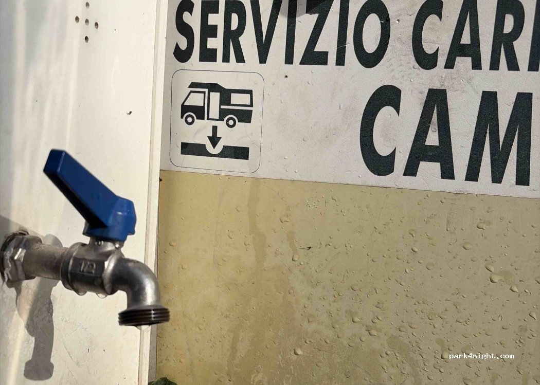 Ottimo per carico e scarico, ultimamente non è possibile caricare acqua perché è fuori servizio, ma c'è l'altro rubinetto dell'autolavaggio, è ad offerta libera quindi molto onesto, solo un po' nascosto e scomodo per arrivarci