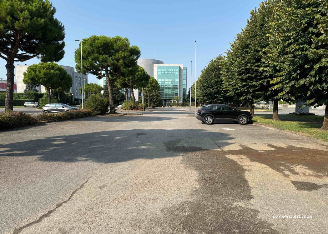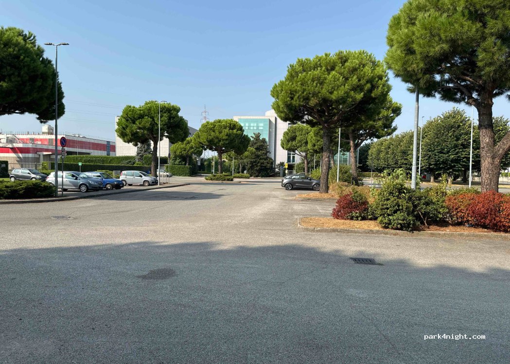 Large parking lot next to hotels and some businesses. Walking distance (10 minutes) to downtown Gorgonzola. Quiet at night. Not a terrible place to stop for a night in an emergency.