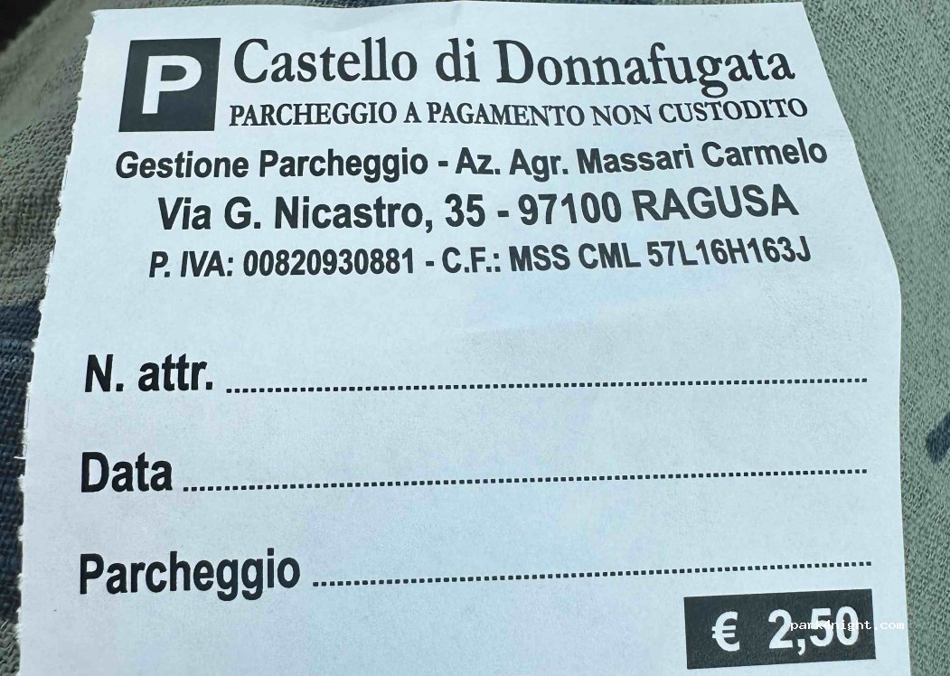 Comodo parcheggio parzialmente illuminato del Castello di Donnafugata che é magnifico e merita il viaggio. Abbiamo pernottato in tutta tranquillità e sicurezza con soli 2,50 euro. Non dó 5 stelle perché non é in piano ed ho dovuto utilizzare i cunei.