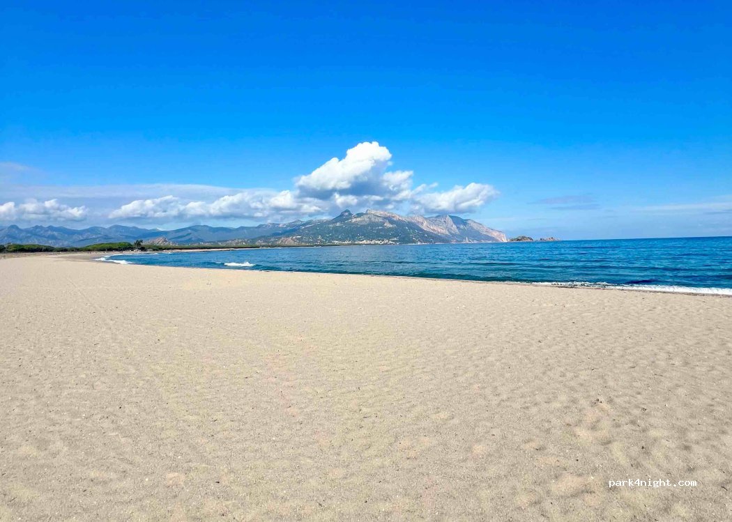Hier gibt es einen langen Strand mit viel Platz zum Parken. Ruhiger und besser als der am Hafen. (Keine Disco)