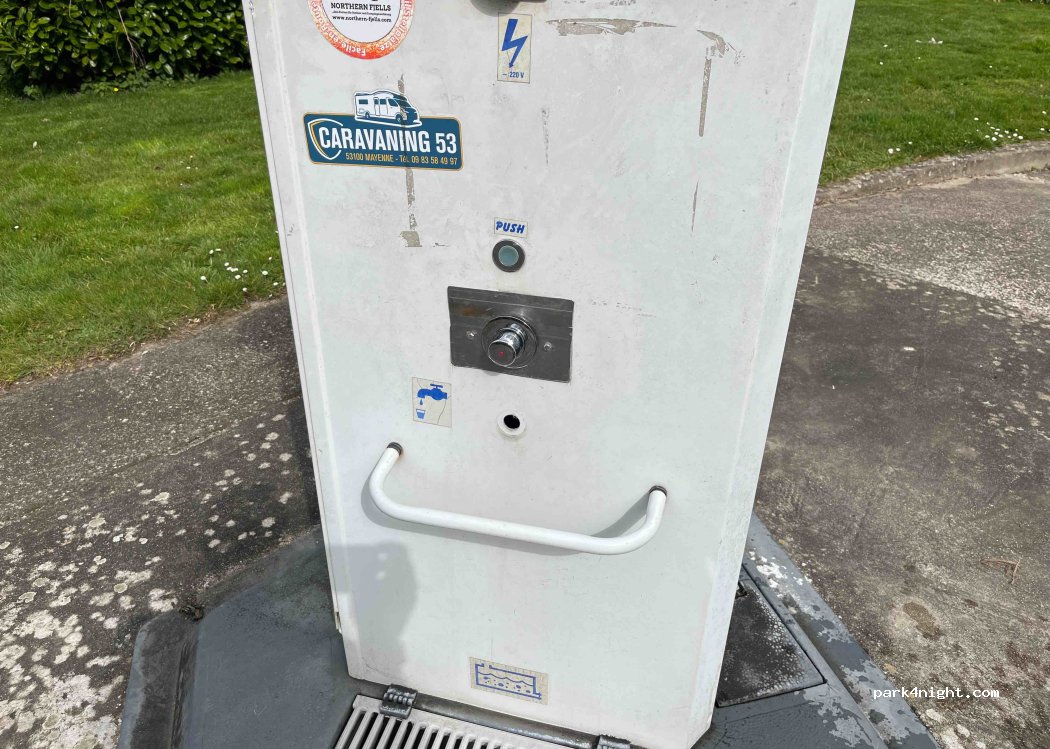 Borne avec services gratuits (eau et électricité). Possibilité de vidanger les eaux grises et eaux noires.