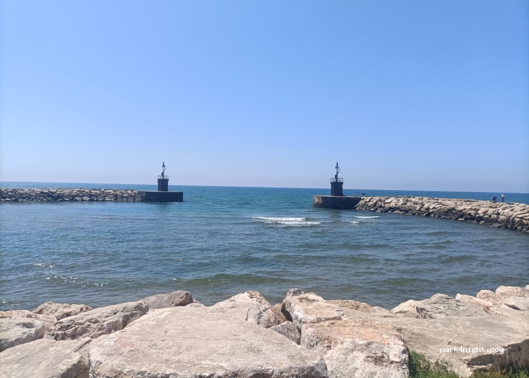 Arrivé un dimanche fin après midi, le parking était plein. Vers 19h beaucoup de places libres . Passé une nuit au calme. Dommage qu'il y a des bâtiments en ruines et que les poubelles débordent. A part cela promenade agréable sur la jetée et sur la plage entre les pêcheurs.