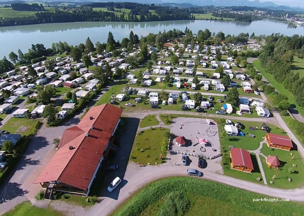 Un grand camping avec les avantages (infrastructures, nettoyage) et les inconvénients (du monde, emplacement reduit) que cela signifie. Nous avons fait deux nuits pour les excursions dans les châteaux bavarois. Il y a restaurant snack cuisine a disposition. Jeux pour enfants au top.