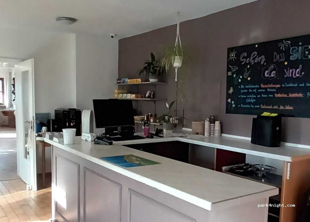 Sehr freundliche und hilfsbereite telefonische Beschreibung zur Platzanfahrt. Zu dieser Zeit ist der Stellplatz für WoMos leer - waren zu zweit auf dem großen Platz. Sanitär zwar in den Jahren aber sauber. Ein Automat mit Bier und Kaffee rundet den Abend ab. Gerne wieder