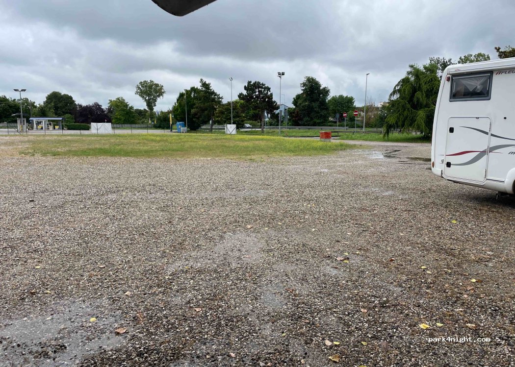 l'area attrezzata era completamente occupata durante il ponte dell'Immacolata , ci siamo diretti qui: 2 camper alle 12.. 50 alle 20.. tranquillo durante la notte comodo per il centro città a 500 m lungo la pista ciclabile bus navetta gratuito dal parking canoa. Nessun servizio a parte acqua potabile dietro la cassa €10 per 24 ore molta attenzione nell' attraversamento della strada principale