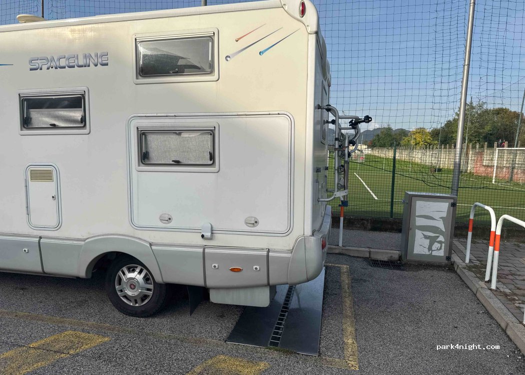 Ottima soluzione per una sosta. Zona residenziale e tranquilla. Pista ciclopedonale e nuovissimo parco giochi. Presenza di una piccola fontana nel parco bimbi. Scarico funzionante. Per il carico le istruzioni invitano ad aprire un portello con una chiave quadro e prendere il tubo interno. Presenza di acqua quindi non verificata.
