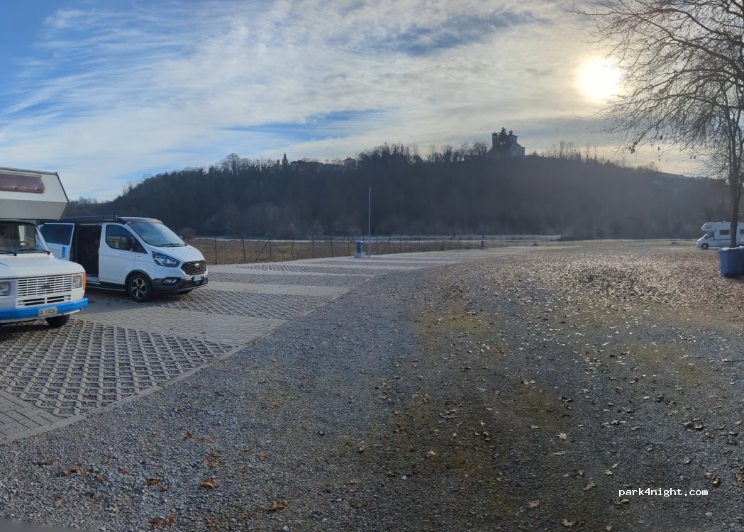 Parfaite halte très calme dans la réserve naturelle de Crava. Places stabilisées sur pavés béton. Eau, vidanges et électricité gratuites. Barbecues, aire de jeux et tables de pique-nique. Merci à la municipalité de Rocca De'Baldi.