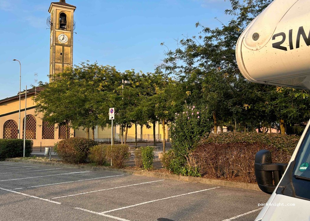 Piccolo parcheggio in una zona tranquilla e residenziale del paese. Ci siamo fermate qui per una notte di passaggio. È in piano e comodo da raggiungere dall'autostrada. Unica pecca il campanile, con rintocchi molto frequenti.