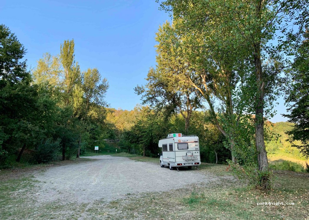 Quiet car park, nice view, 1 other camper when we were there - we came here as we wanted a spot out of town (to let our cat wonder around). next day very pleasantly surprised by the mini- hike and huge rock formations with 360 view of surrounding area. Must try the food at Il Forno 10mins away near rocks, poss some of the tastiest food we’ve had in Italy (very hipster!)