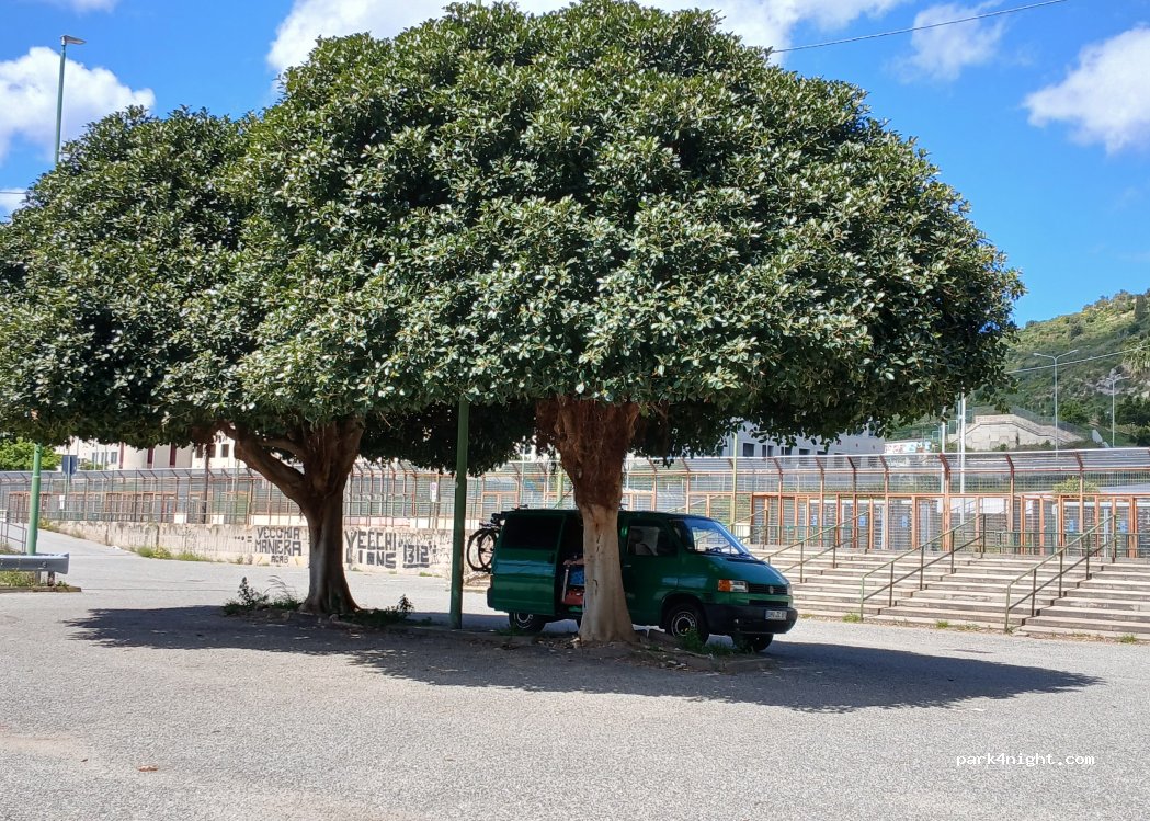 Parking du stade de foot. plusieurs parking au calme pas de route à gros trafic proche du centre de Messine 4km et de l'embarquement pour la Calabre