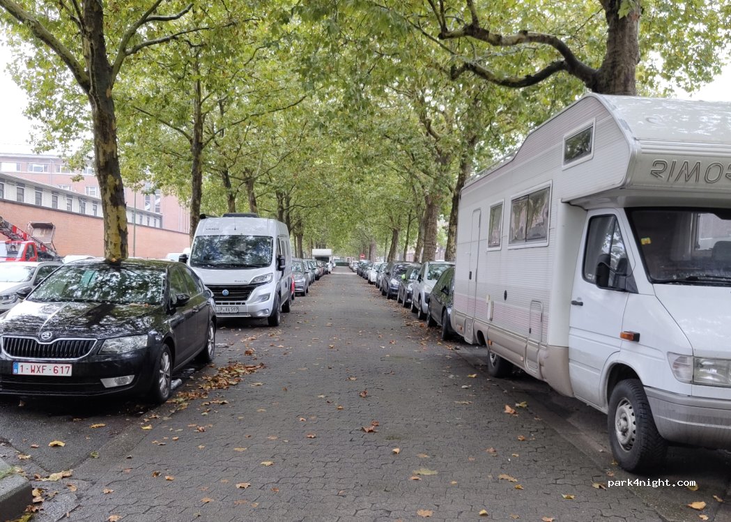 I came on Friday. I found an easy place for the 6.36 Ducato camper. There are 6 lanes of parking space. the 2 lanes in the middle are less noisy. we stayed one night. We will stay overnight. We slept well. We went to Grand Place by bus number 95. We walked on the way back. It's a safe place. One side of the road is Police headquarters. It is a free parking lot.