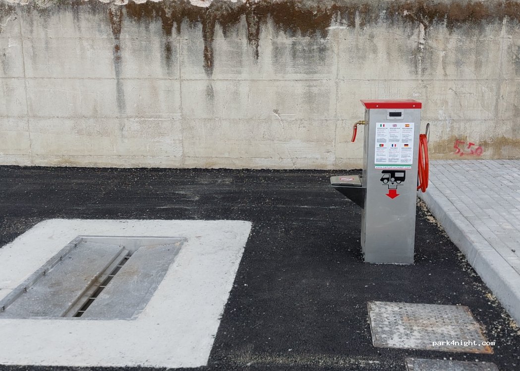 ampio parcheggio con 4 posti dedicati. Corrente non funzionante, acqua potabile bianca lattea, non ci siamo fidati. Scarico delle nere che schizza ovunque quando risciacqua (e decide lui quando farlo...), ok grigie. Sosta a pagamento durante il giorno, gratuito dalle 19 alle 8. Sarebbe tranquillo ma il 28/12 c'erano già parecchi botti