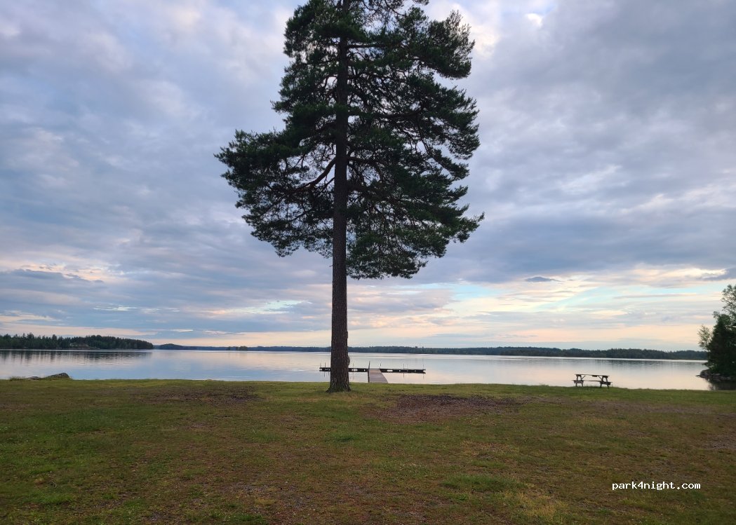 Parkplatz zu klein für Wohnmobil in der Saison. Mittelmäßige Badestelle, See ist nicht so sauber wie man es in Schweden kennt. Toiletten sind eine üble Katastrophe. Mülltonnen quellen über. Umkleide scheint Ersatzklo zu sein.