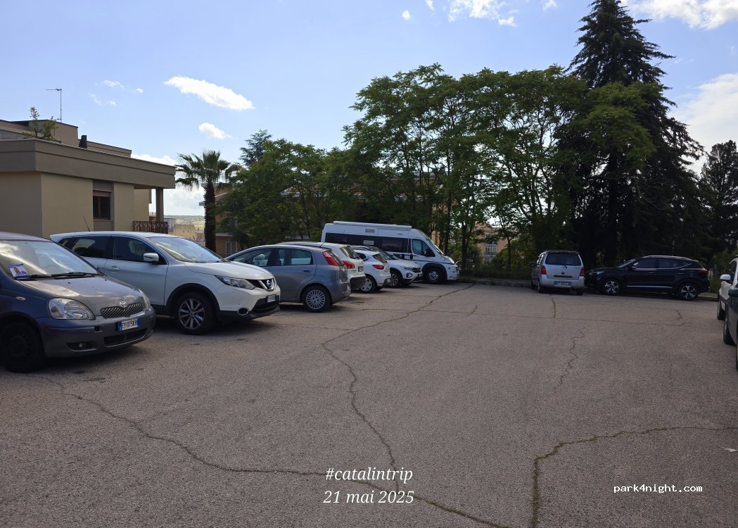 Va detto che parcheggiare a Matera con un camper o un van non è cosa facile. Questo parcheggio però può risultare deludente per spazio e location. Si tratta di pochi posti auto in un’area tranquilla, prossima a un complesso residenziale di fronte al cimitero. Noi siamo stati fortunati a trovare un posto Van a Capodanno dopo un paio di tentativi, ma lo spazio è limitato con altre auto parcheggiate.