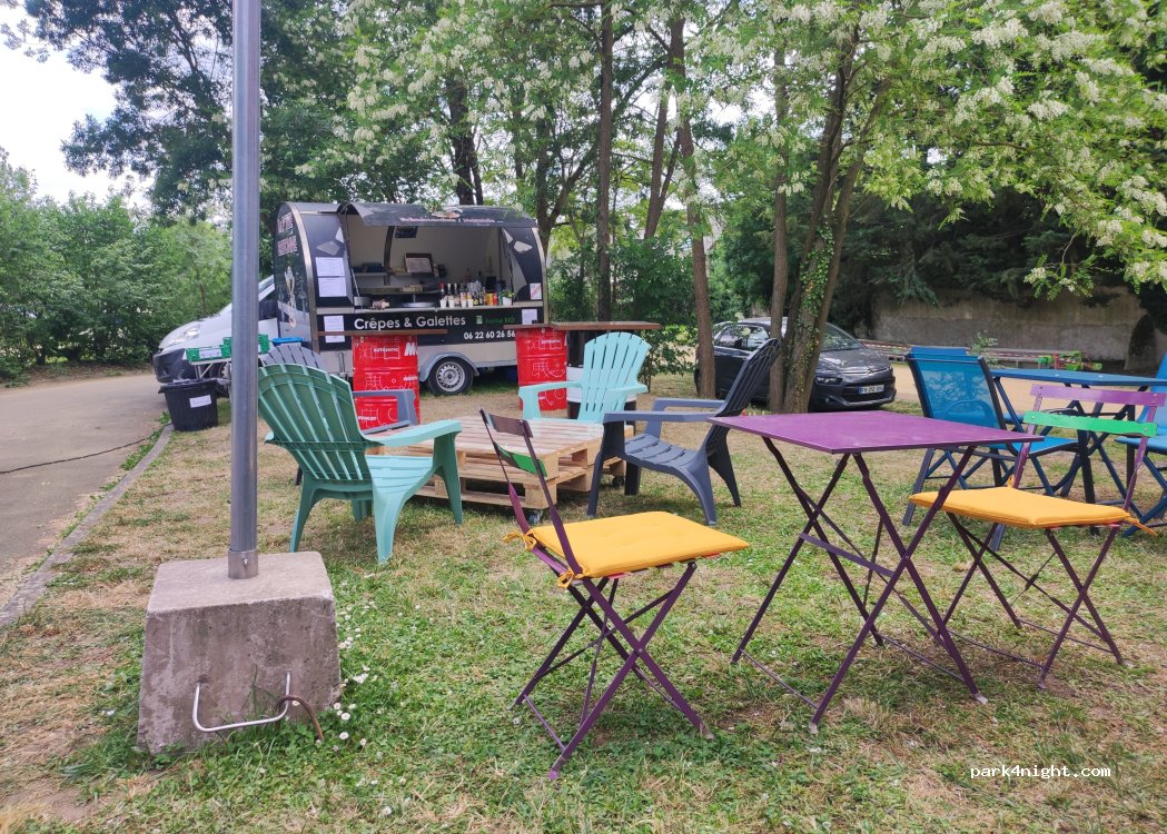 Très belle aire. Nouveau : un food truck crêpes et galettes est présent le soir en semaine. Tres bonnes.