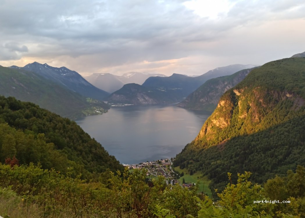 Parking in a hiking area. Right on the street. As it is only a dead end and leads to two distant farms, the traffic is hardly felt. The access road is relatively narrow. The view of the fjord is gigantic! Camping forbidden