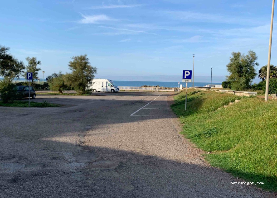 Buon parcheggio con zona delimitata per camper. Tranquilla e vicino al centro e alla passeggiata lungomare. Fronte mare.