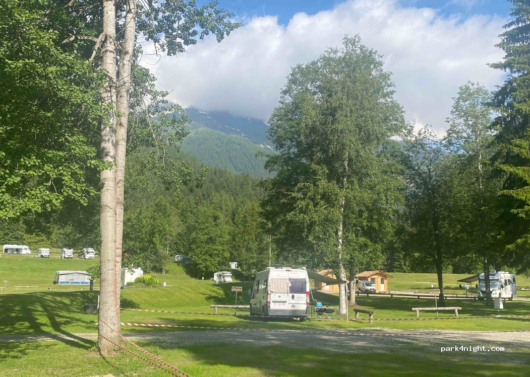 Prachtige camperplaats in het dal van de rivier de Rabbi. Rondom hoge toppen met sneeuw. Groen, schaduw. Van hieruit vele wandelingen en fietstochten te maken in het Stelvio Nationaal Park. Bakker komt elke ochtend om 8.30. Eenvoudig maar schoon sanitair. Lozen vuil water en toilet, tanken schoon water. Er is een bar met terras en Wifi die eenvoudige maaltijden aanbiedt. Prima plek.