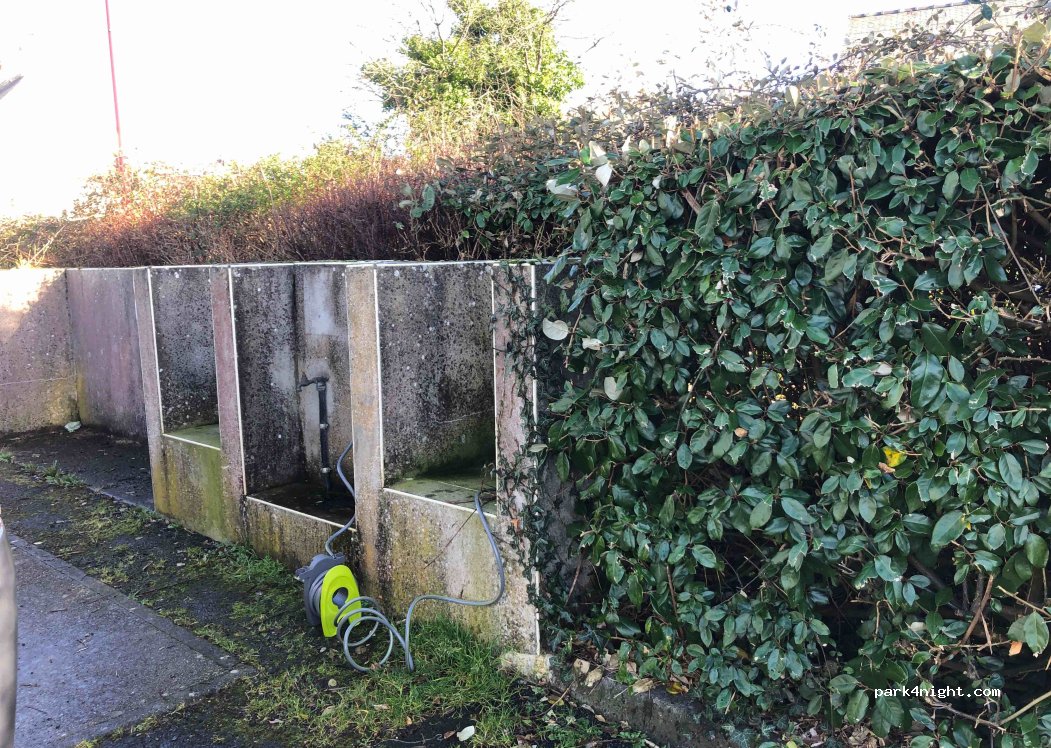 Borne artisanale gratuite mais l’eau est coupée actuellement. 2 parkings l’un à côté de l’autre, l’un en dur, et l’autre avec pavé et herbe, très pratique car même en janvier par temps humide on peut accéder aux 2 parkings. Cadre agréable et très calme. Bonne route à tous !