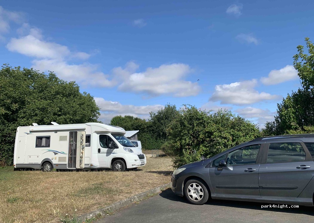Agréables emplacements réservés pour 5 CC attenant au parking VL sur herbe stabilisé. Seul bémol, vidange cassette pas très hygiénique, pas de distinction entre les robinets d eau propre et cassette. Endroit très calme, proche voie verte le long de la Mayenne