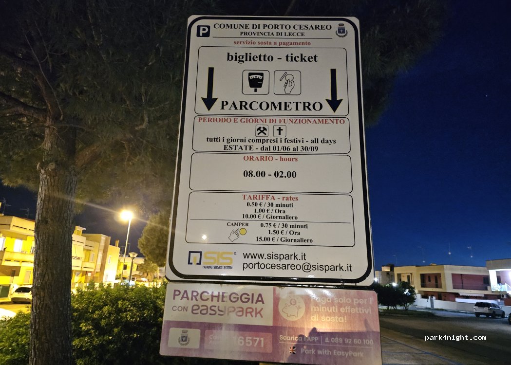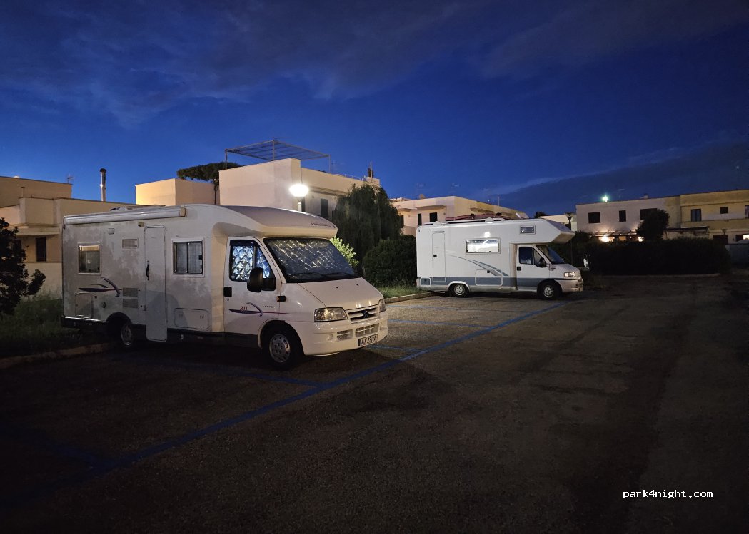 Good parking lot in a calm area for those who want to sleep away from noise. There are 5 spaces reserved for motorhomes. Only 10 minutes from the center on foot.
